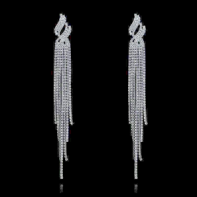 Серьги со стразами для фитнес-бикини в форме листка со свисающими нитями страз. Длина 15 см.