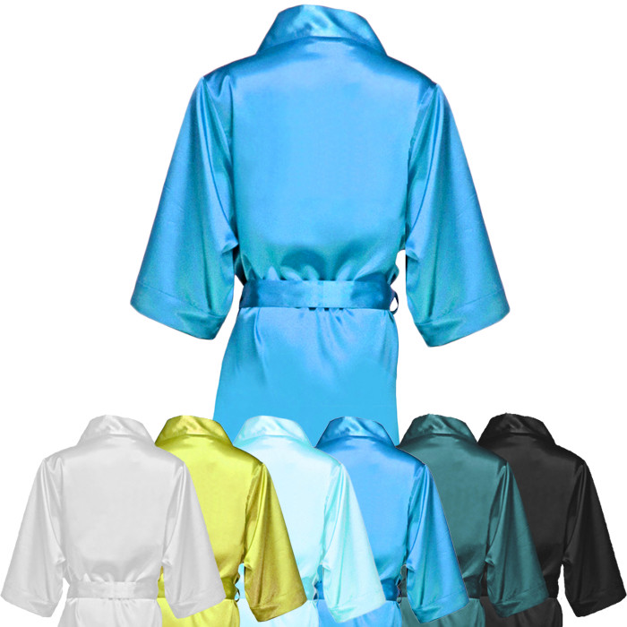 Легкий атласный халат для фитнес-бикини голубого цвета с вашим именем на спине, набранным стразами. Идеально подходит для ожидания выхода на сцену или отдыха после выхода.
