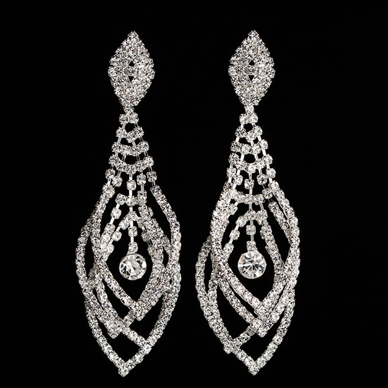 Серьги для фитнес-бикини со стразами умеренной длины (9 см) оригинального «лепесткового» дизайна с выраженным центром. Максимальная ширина сережек – 2.25 см.
